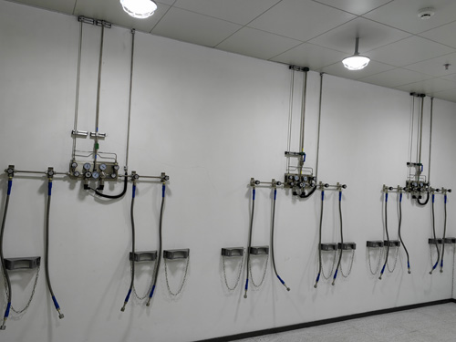 3.5N惰性氣體、氦氣、留出氣管理線用到OD1/4”(6.35mm)的管,支線用到OD1/4”(6.35mm)的管。用焊接生產三通接頭并成支路來對儀器使用供汽。
